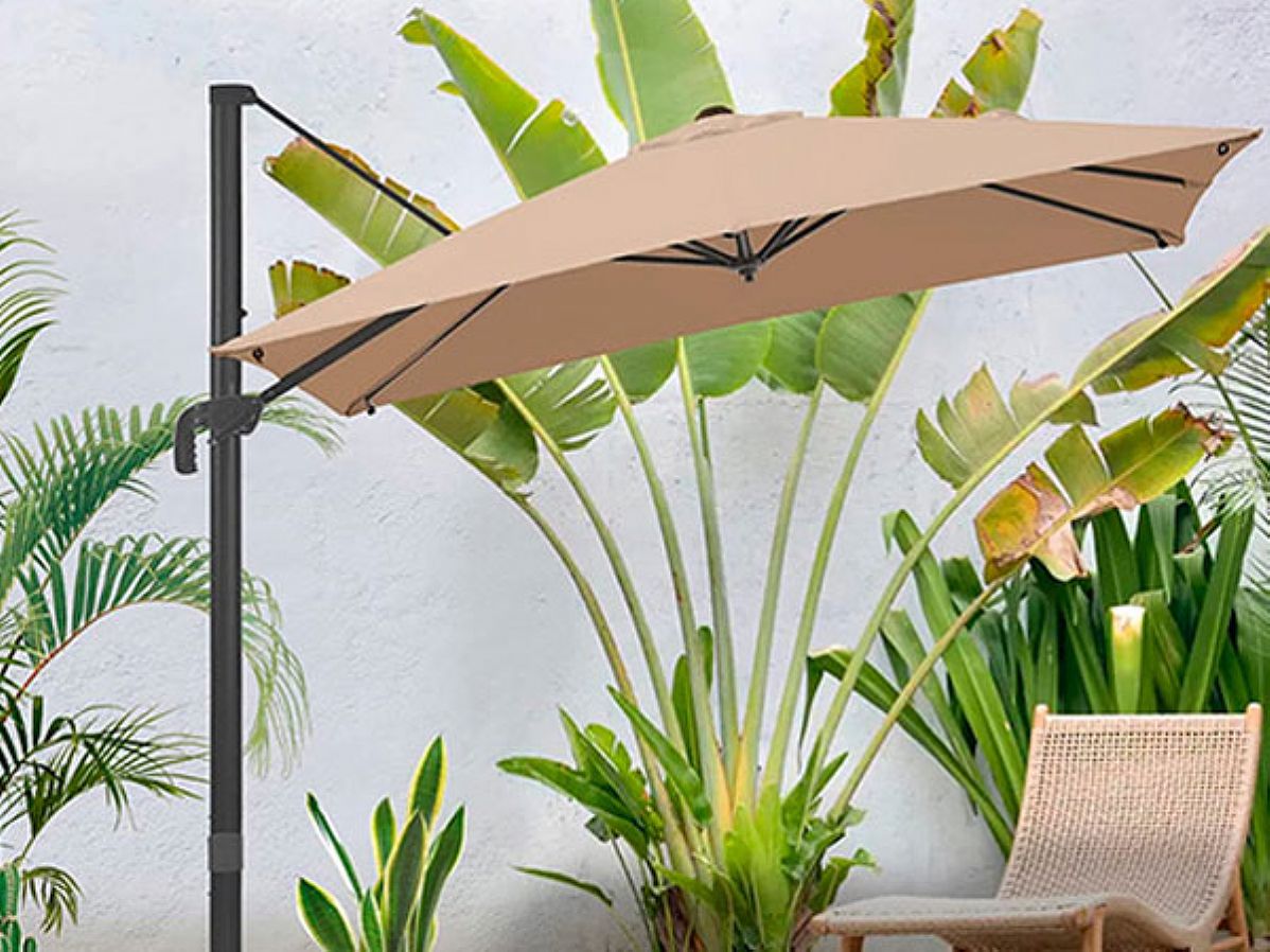 This 360-degree rotating cantilever umbrella is ideal for patios, poolsides, backyards, gardens, cafes, and other outdoor spaces where you can enjoy time with friends without worrying about being burned.