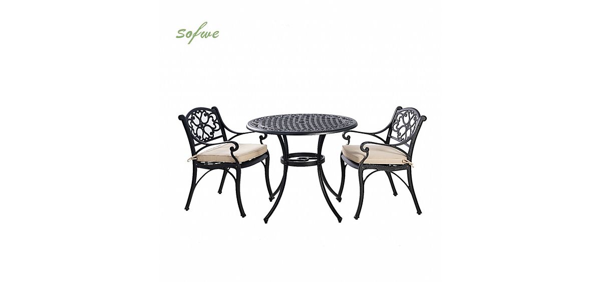 In conclusion, the 3 Pcs Cast Aluminium Patio Bistro Set offers several advantageous features. The cast aluminum construction provides durability and rust resistance, while the intricate design adds an elegant touch. The round table promotes easy conversation, and the padded cushions offer comfort. With these features combined, this bistro set is a great choice for creating a relaxing and stylish outdoor seating area.