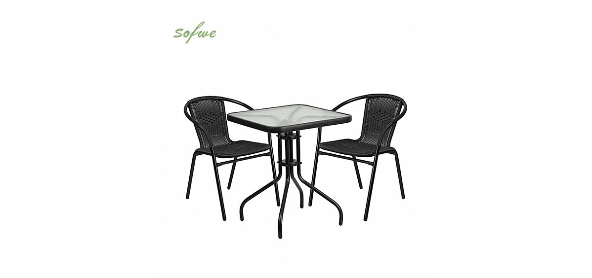 Our 3 Pcs Rattan Dining Table Set offers many advantages, making it a remarkable addition to any dining space. This set includes one square metal table with a glass tabletop and two rattan chairs, and here are the key points that make it stand out: