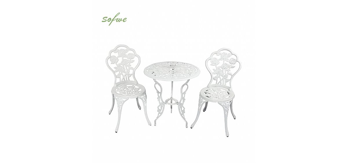 Our bistro table set is constructed of sturdy cast aluminum, has a smooth surface, is waterproof and rustproof, has great pressure resistance, and does not flex. The bistro chair can support a maximum weight of 200 lbs. and is long-lasting and simple to clean.