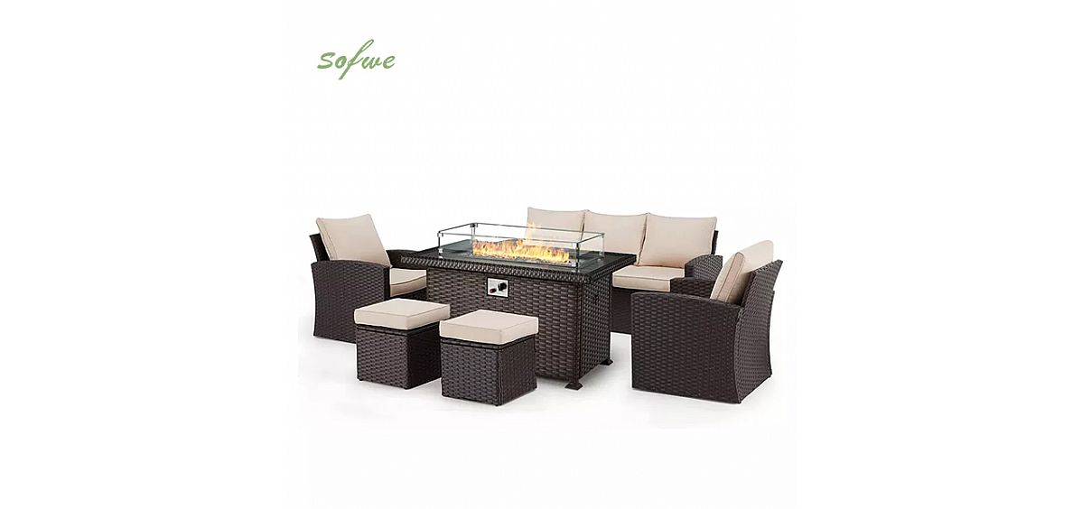 Nothing beats kicking back in a wicker chair in the garden with a nice book and a refreshing drink on a warm day. Throw in this 6-piece wicker patio furniture sofa set to further enhance your leisure time outdoors. This set comes with a full-fledged sectional sofa, two rattan chaise lounges, a fire pit table, and five lofty cushions for your total relaxation. Set up some resin wicker chairs by the pool, or use them to decorate your dining room or other private spaces. With this furniture conversation set, you can enjoy backyard gatherings with the family so that everyone can eat and socialize in the warm sunshine. The fire pit table is a perfect complement to the set. You can't go wrong with rattan patio furniture. It's elegant, durable, and stylish.